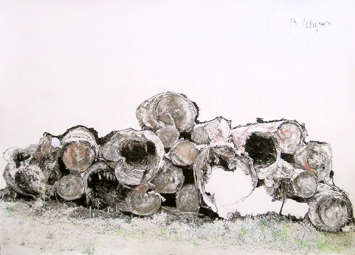 Kohle und Farbstifte auf Kupferdruckkarton 76,5 x 107 cm