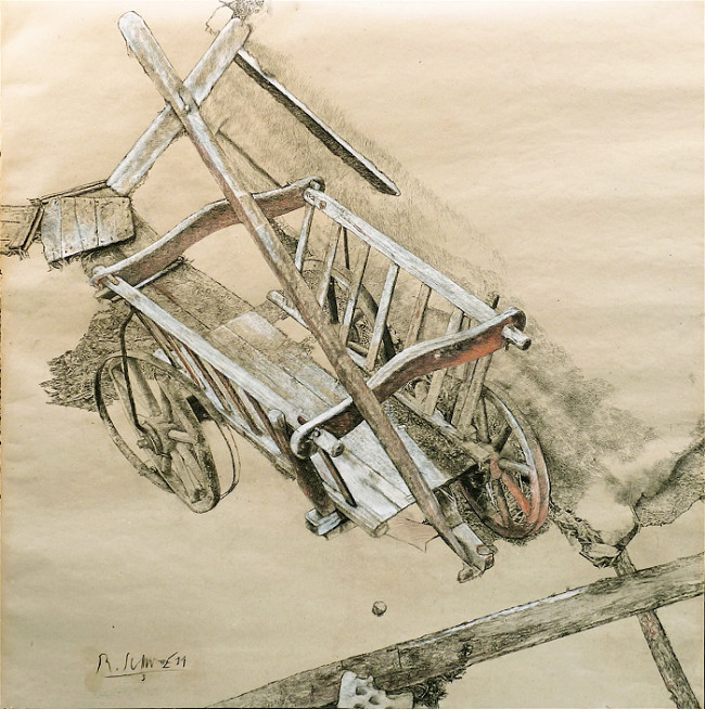 2014, Kohle und Farbstifte auf Packpapier 102 x 102 cm